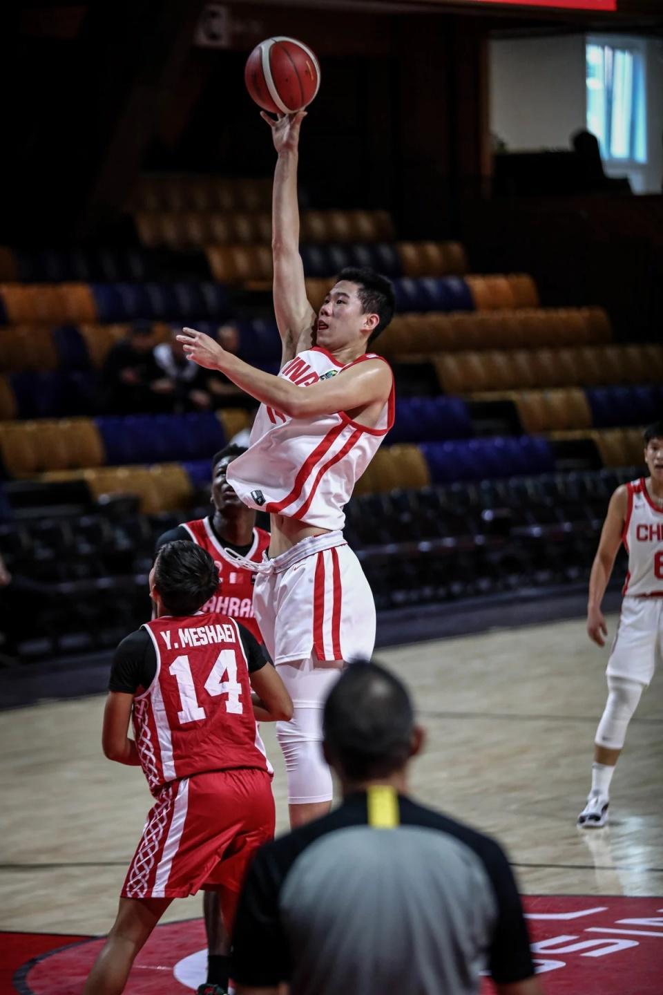 次节比赛,石洺豪三分命中,巴林队一波5-1攻势追分,赵博新连投带罚引领一波8-2攻势扩大优势。巴林队冲击内线追分,张淳智三分回敬,双方接连冲击内线得分,张淳智上篮得分。巴林队连追3分,张子一两罚全中,中国队单节21-15净胜6分,上半场结束中国队42-31领先巴林队。前两节比赛,双方均是只有一人得分上双,陈昱休11分,阿卜杜勒卡迪尔16分8篮板。