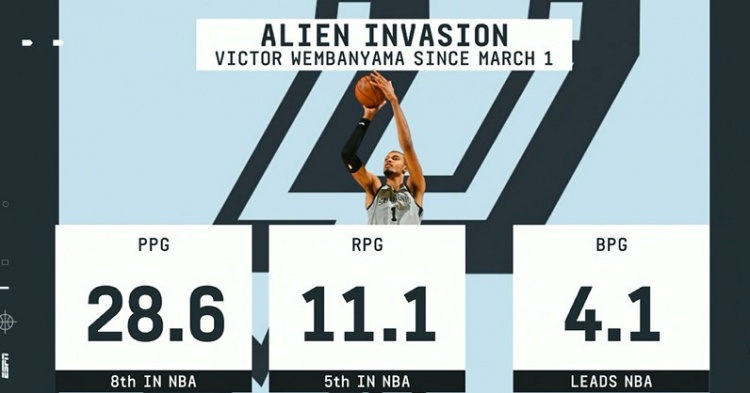 开云体育-毁天灭地!3月以来文班场均4.1帽领跑全联盟 28.6分第8&11.1板第5