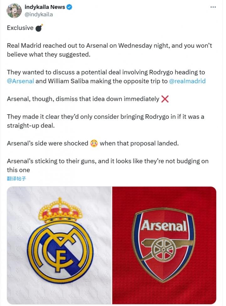 阿森纳俱乐部对此提议反应强烈,不仅当场予以拒绝,更明确表态只接受纯粹的转会交易。据悉,枪手高层对皇马提出的交换方案感到十分意外。