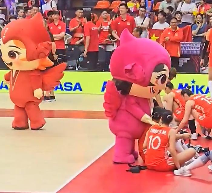 除了安慰龚翔宇之外,吉祥物还在安抚其他球员,和她们贴贴,也在给她们拥抱。毕竟都是年轻球员,她们面对失利都非常难受。这次比赛之后,全队也都会耐心总结,期待明年的世界大赛,球队能有实质性的进步吧。