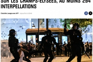 巴黎警方在当晚22时左右宣布,已经有59人被捕,主要是因为“发射烟花和燃烧弹等”。而之后根据警方的最新统计数据,目前至少已经有294人在庆祝期间被捕。