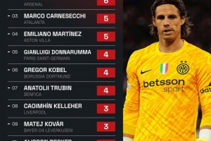 体育资讯4月11日讯 据Squawka数据统计,本赛季欧冠联赛中门将零封前十榜单中,其中国际米兰的索默以7次零封居首,阿森纳门将拉亚6次排名第二,大马丁第四。
